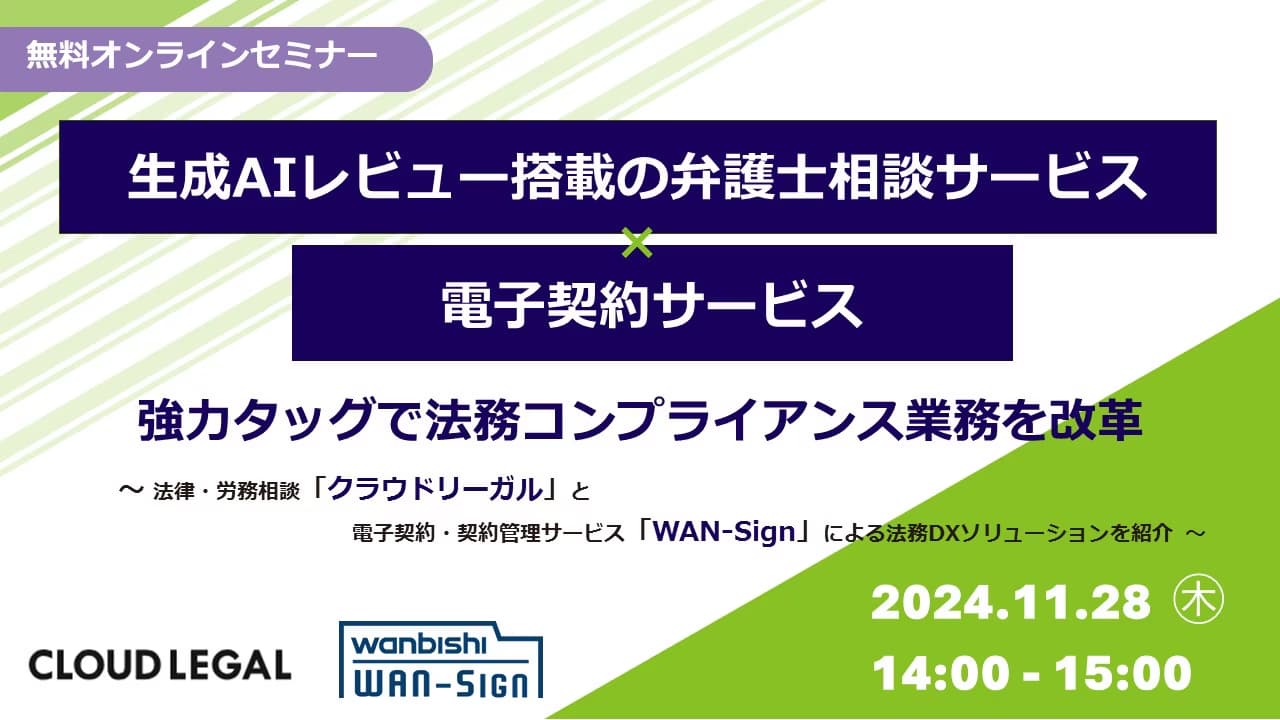 ~法律・労務相談「クラウドリーガル」と電子契約・契約管理サービス「WAN-Sign」による法務DXソリューションを紹介~